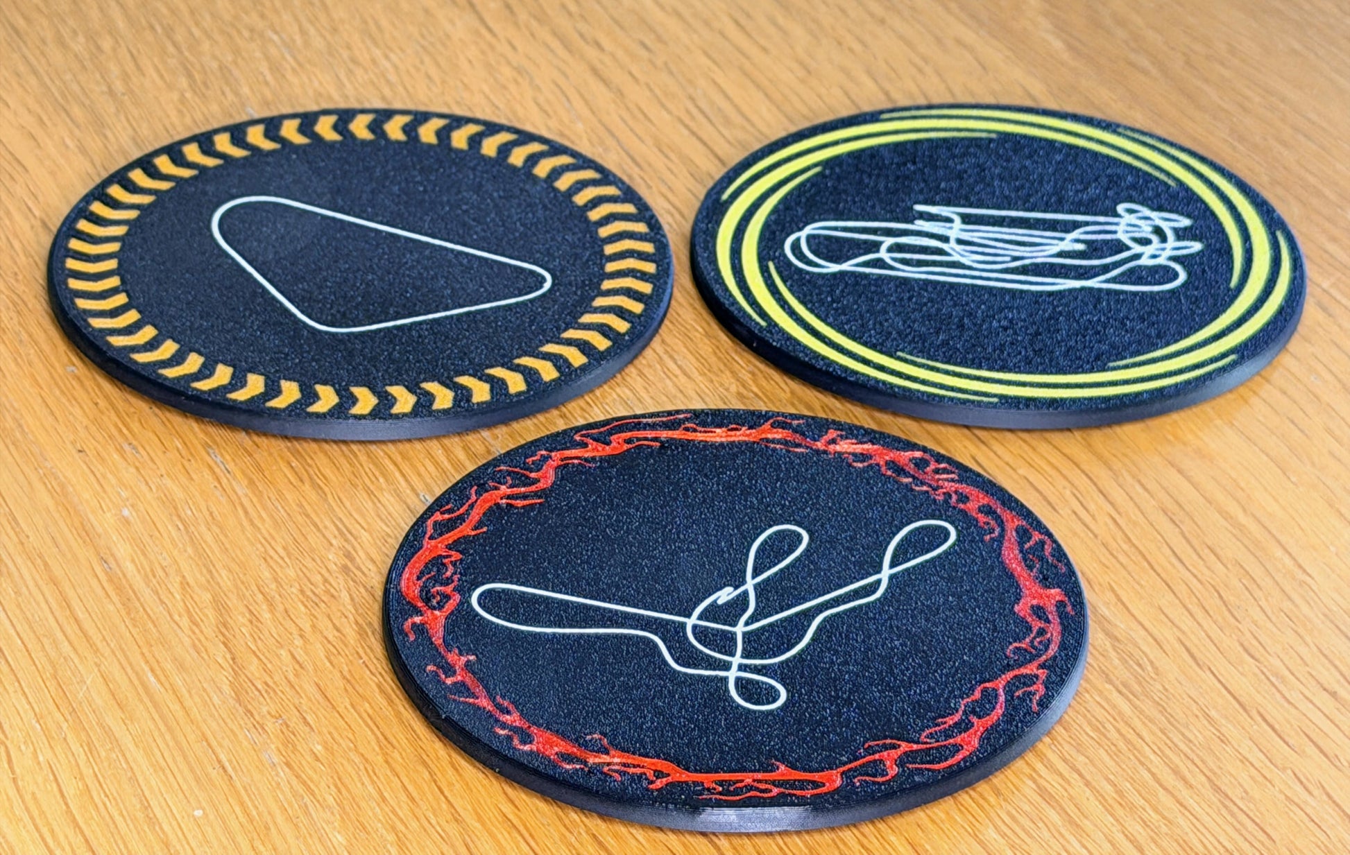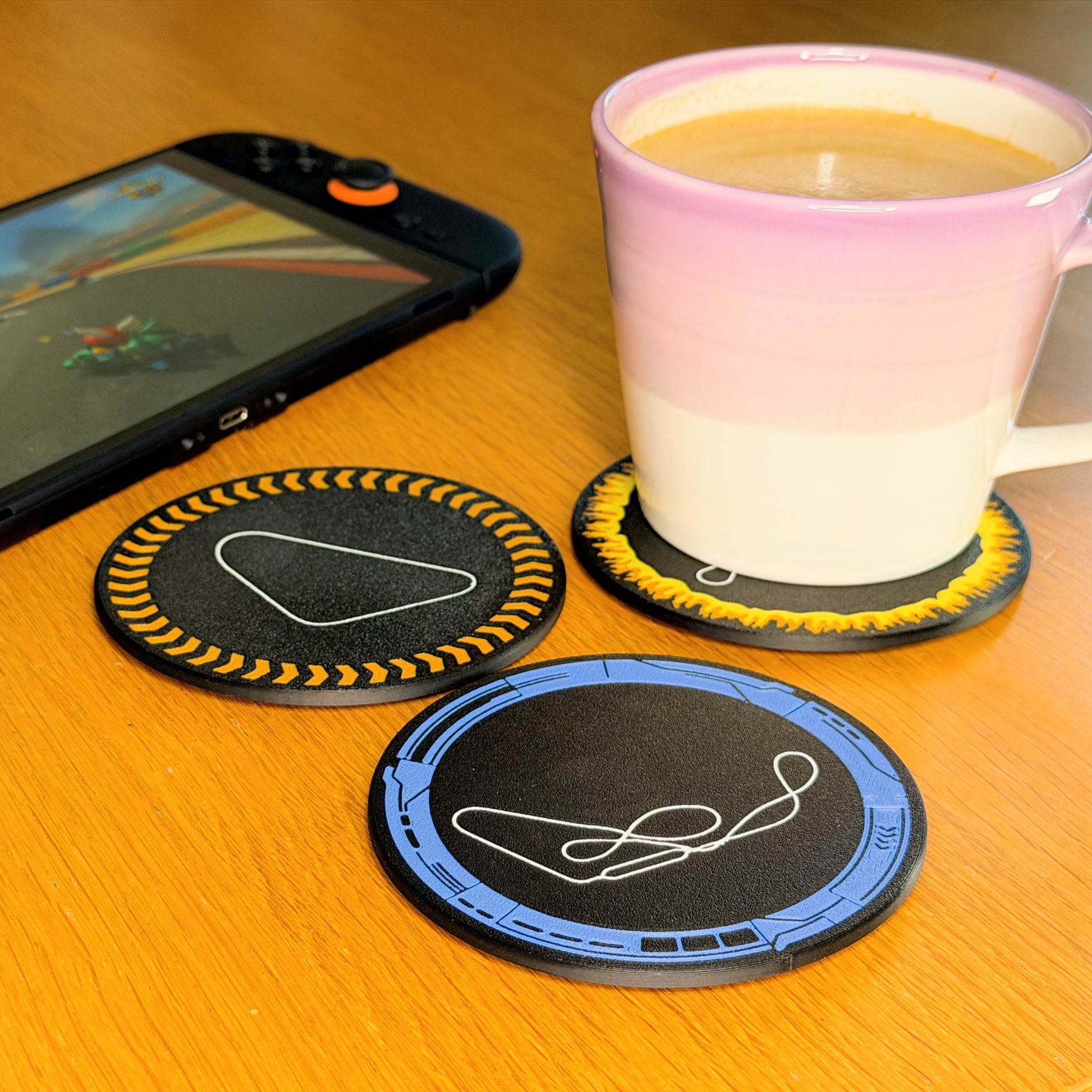 Each coaster is 3D printed and finished by hand by Hazcub, giving every piece unique character. At 10cm in diameter with a soft foam bottom, it’s designed to protect your surfaces while looking striking.